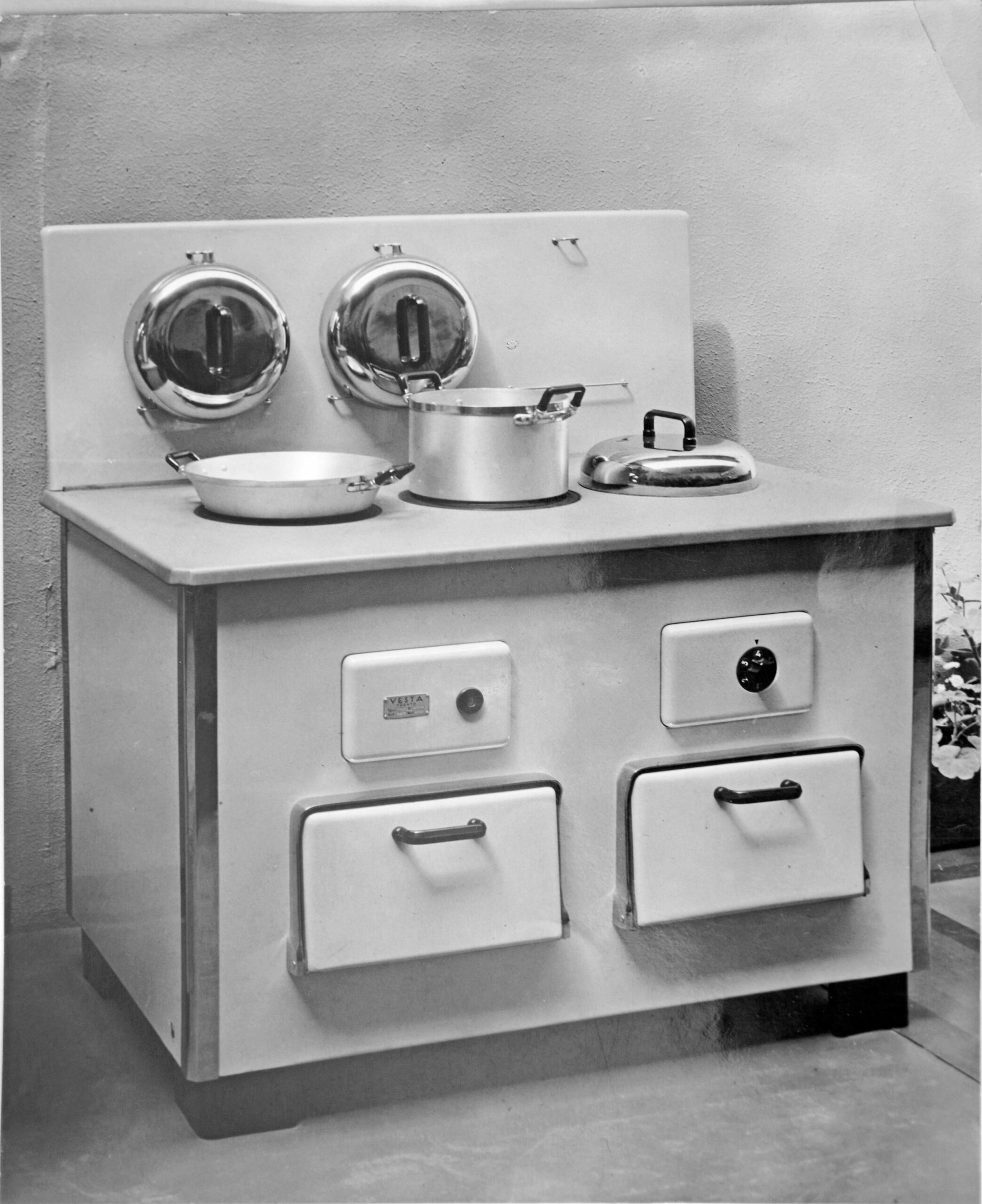 1929 Enrico Cristofolini fonda la prima officina Vesta in Via Tommaso Gar. L’obiettivo? Innovare la cucina con un prodotto che unisse efficienza e tecnologia: ๐ฅ๐ž ๐œ๐ฎ๐œ๐ข๐ง๐ž ๐š๐ ๐š๐œ๐œ๐ฎ๐ฆ๐ฎ๐ฅ๐จ.